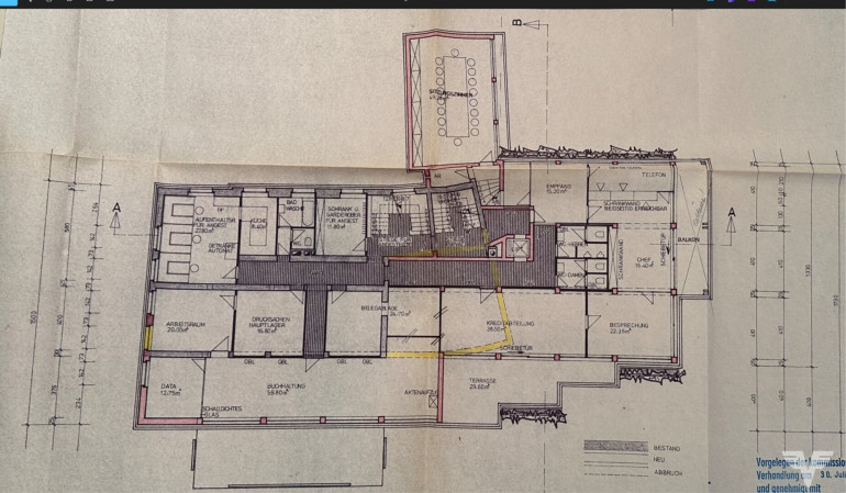 Insgesamt verfügt man über Flächen von 437 m². Die Büroflächen befinden sich im 1. Obergeschoss und sind über Lift erreichbar.