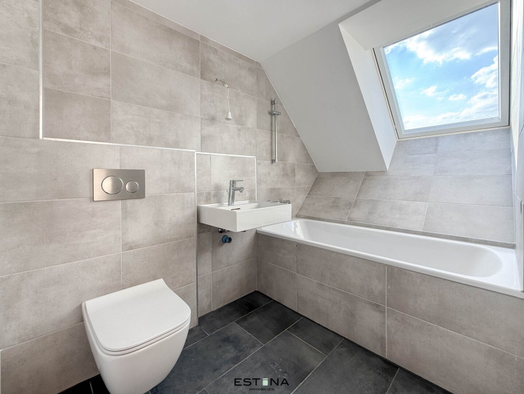 Fliesen, Parkett, Fußbodenheizung, Einbauküche, Wohnküche / offene Küche, Personenaufzug, Ostbalkon, Badewanne