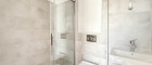- Badezimmer mit Dusche, Waschbecken und Toilette