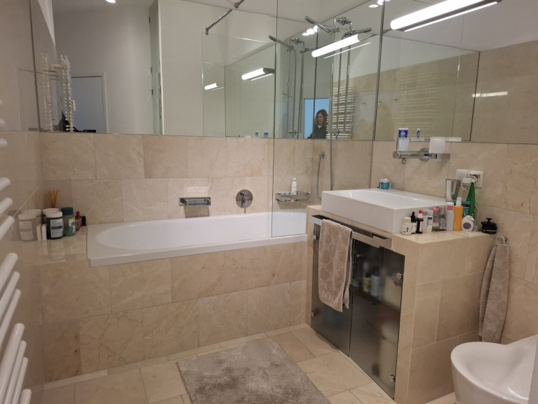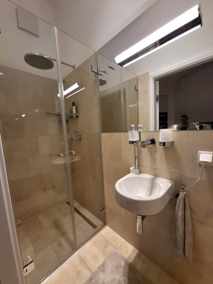 Ein weiteres Badezimmer mit Dusche und WC steht ebenfalls zur Verfügung und unterstreicht die Alltagstauglichkeit der Wohnung, insbesondere für Familien oder Gäste.