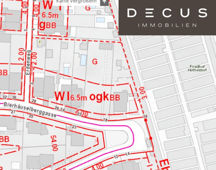 Die Liegenschaft in der Bierhäuslberggasse 18 befindet sich in einer der begehrten Grünlagen des 14. Wiener Gemeindebezirks – am sanften Übergang zwischen urbaner Infrastruktur und naturnahem Wohnen am Wolfersberg. Eines der letzten freien Grundstücke in Südlage.