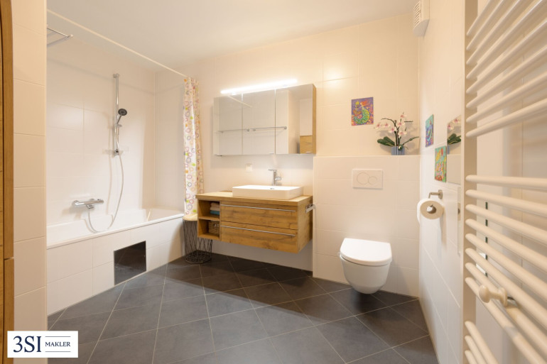 Drei flexibel nutzbare Zimmer bieten Raum für alles, was das Leben mit sich bringt, Kinderzimmer, Homeoffice, Gästezimmer oder ein ruhiger Rückzugsort als Schlafzimmer. Zwei Badezimmer sorgen für Komfort im Alltag, ein Bad mit Badewanne lädt zum Entspannen ein, das zweite Badezimmer mit Dusche und WC bietet zusätzliche Funktionalität – ideal für Familien oder Besuch.