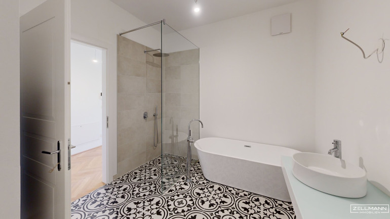 Besonderes Augenmerk wurde auf eine hochwertige und langlebige Ausstattung gelegt, die sowohl optisch als auch funktional höchsten Ansprüchen gerecht wird. In den Wohnräumen sorgt ein edler Eichenparkettboden in geölter Ausführung für eine warme, natürliche Atmosphäre, während die Bäder und WCs mit stilvollen, zeitlos gestalteten Fliesen ausgestattet sind.