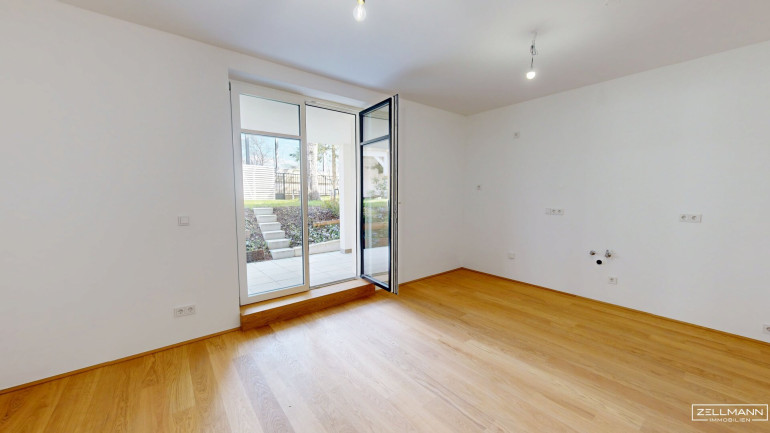 Abgerundet wird das Angebot durch durchdachte Allgemeinbereiche wie praktische Einlagerungsräume, einen eigenen Kinderwagenraum sowie überdachte Fahrradabstellplätze mit direktem Zugang zum Wiental-Radweg – eine ideale Lösung für einen aktiven und komfortablen Alltag.