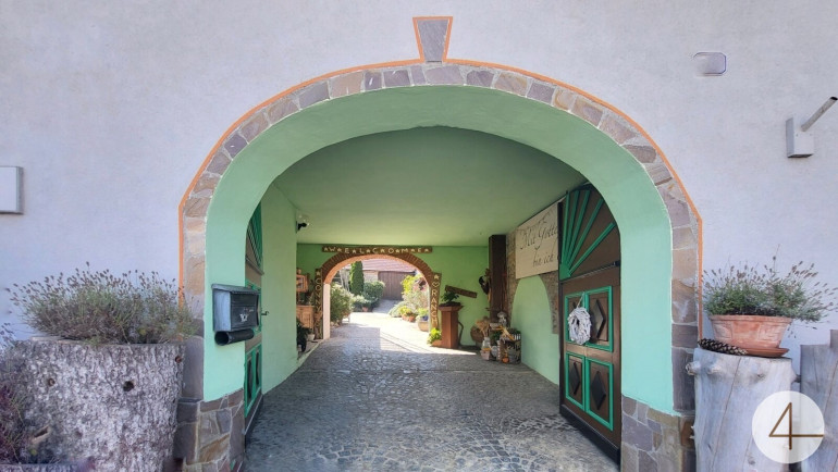 Der Zugang zum Vierkanthof erfolgt durch ein malerisches Rundbogentor. Der nicht einsehbare Innenhof(435m²) lädt Sie in die Privatsphäre ein, die Sie schon lange suchen