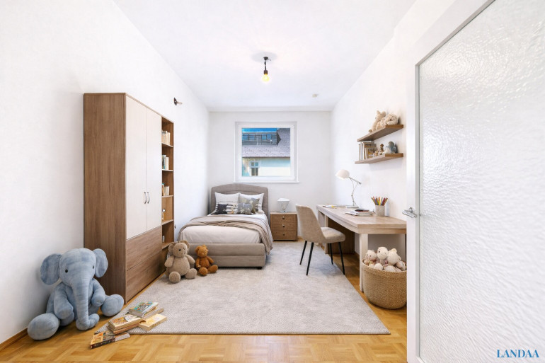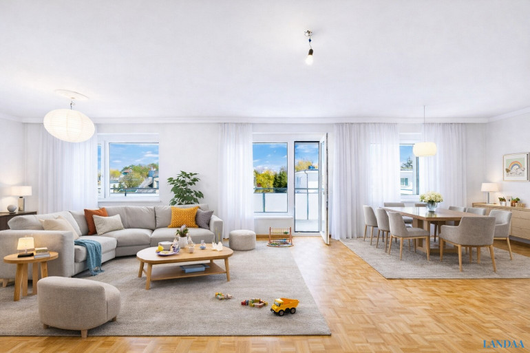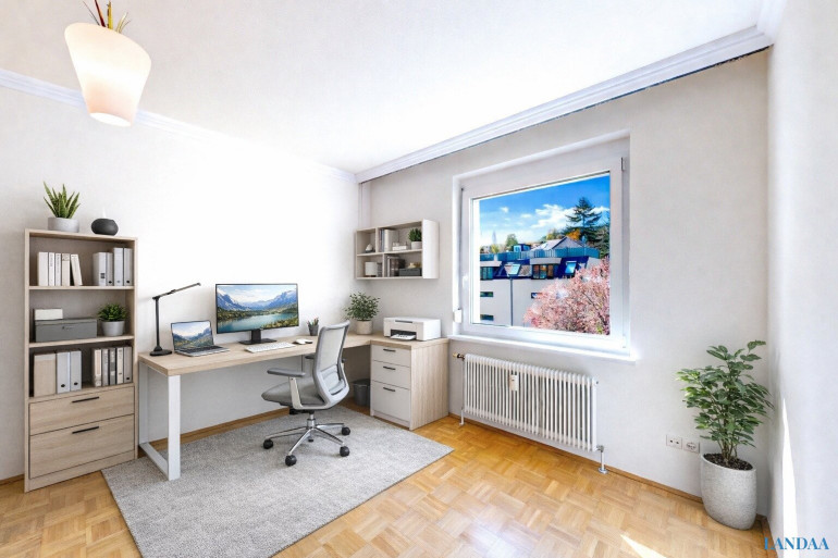 Die Raumaufteilung eignet sich insbesondere für Familien, da mehrere Zimmer zur Verfügung stehen und eine klare Zonierung von Wohn-, Schlaf- und Arbeitsbereichen möglich ist.