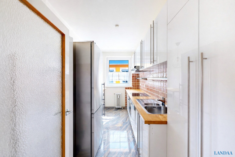 Der Grundriss ist klar gegliedert und ermöglicht eine vielseitige Nutzung. Das zentrale Verbindungszimmer bildet dabei einen wesentlichen Bestandteil der Wohnung und bietet Potenzial für die Gestaltung eines offenen Wohn- und Essbereichs. In der aktuellen Struktur fungiert es als verbindendes Element zwischen den einzelnen Wohnbereichen.
