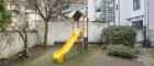 • großer Gemeinschaftsgarten mit kleinem Spielplatz