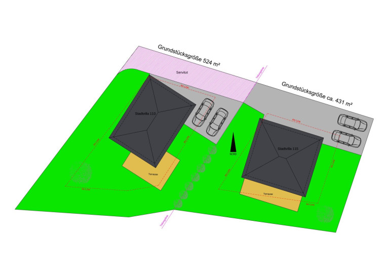 Erdarbeiten und Nebengebäude wie Garage sind nicht im Preis enthalten.