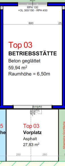 - Betriebshallen und Gewerbeflächen mit 6,5 Meter Höhe