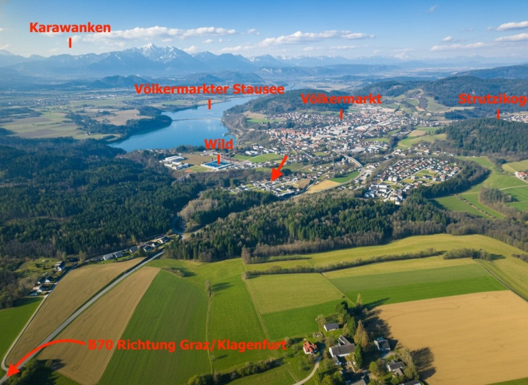 Die Adresse Stadtwaldweg in 9100 Völkermarkt liegt in einer Wohnregion, die den zentralen Anforderungen anspruchsvoller Eigenheimkäufer in besonderer Weise entspricht: ein harmonisches Zusammenspiel aus Lebensqualität, Infrastruktur, Familienfreundlichkeit und naturnahem Umfeld. Völkermarkt bietet als moderne Bezirkshauptstadt eine solide urbane Basis mit breitem Bürgerservice, Bildungsangeboten und Einrichtungen für Familien, wodurch sich der Standort insbesondere für kaufkräftige Eigennutzer und langfristig orientierte Hauskäufer als äußerst attraktiv positioniert. Ein wesentlicher Standortvorteil liegt in der Einbindung in die Region Klopeiner See – Südkärnten, eine der beliebtesten Wohn- und Freizeitregionen Kärntens. Die Umgebung von Völkermarkt ist von Bergen, Flüssen und Badeseen geprägt und bietet damit ein Lageprofil, das Ruhe, Naturbezug und aktive Lebensgestaltung miteinander verbindet. Der nahe gelegene Völkermarkter Stausee, ein gut ausgebautes Rad- und Wanderwegenetz sowie zahlreiche Freizeitmöglichkeiten schaffen einen hohen Erholungswert und machen die Region besonders interessant für Familien, Unternehmer, Führungskräfte und all jene, die Wohnen nicht nur funktional, sondern als bewusste Qualitätsentscheidung verstehen. Auch im täglichen Leben überzeugt Völkermarkt durch ein gewachsenes und lebendiges Umfeld. Der Hauptplatz mit seinen regelmäßigen Märkten am Mittwoch und Freitag steht beispielhaft für die hohe Nahversorgungsqualität, Regionalität und Aufenthaltsqualität des Standorts. Dadurch verbindet die Lage ein angenehm entschleunigtes Wohngefühl mit einer funktionierenden städtischen Struktur – ein Faktor, der gerade im gehobenen Einfamilienhaussegment zunehmend an Bedeutung gewinnt. In Summe steht diese Lage für ein wertstabiles Wohnumfeld in Völkermarkt / Kärnten, das sowohl emotional als auch strategisch überzeugt. Für Käufer eines Einfamilienhauses im gehobenen Segment bietet der Standort die seltene Kombination aus familienfreundlicher Infrastruktur, naturnahem Lebensraum und nachhaltiger Standortqualität in Südkärnten.