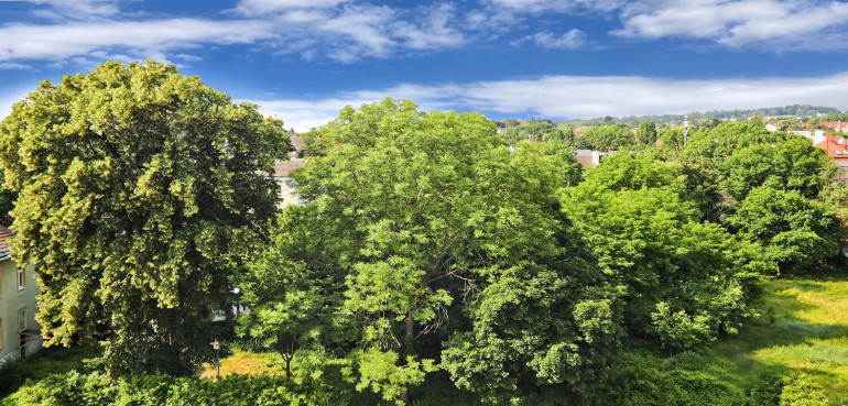 Edles Eichenparkett, Fußbodenheizung und -kühlung moderne Küchen mit Markengeräten (u. a. Miele) sowie elektrische Raffstores bieten erstklassigen Wohnkomfort. Eine Photovoltaikanlage und die energieeffiziente Haustechnik erfüllen die EU-Taxonomie-Anforderungen.