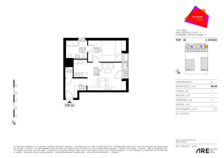 In einzigartiger Ruhelage werden im Wohnbauprojekt AM PARK 231 provisionsfreie Neubauwohnungen errichtet. Die Wohnungen verfügen über 1-4 Zimmer mit Wohnflächen zwischen 37 und 78 m². Fast jede Wohnung verfügt über einen Balkon oder eine Terrasse. Die Apartments sind bezugsfertig und können ab sofort besichtigt werden.