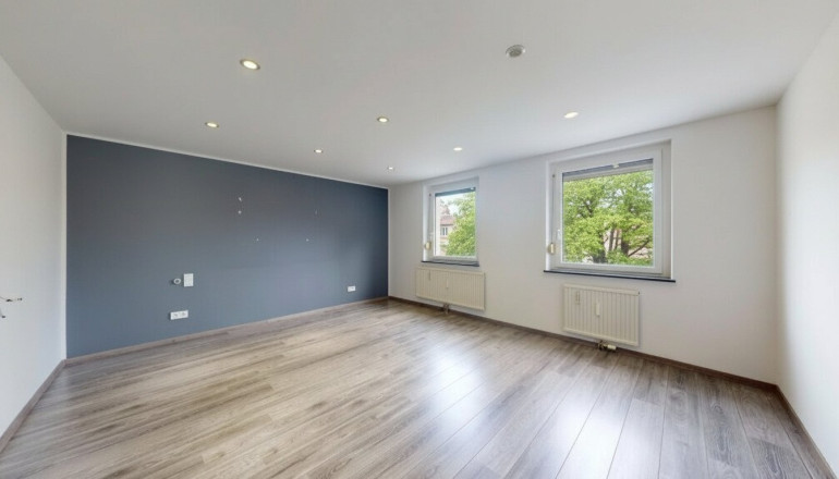 Derzeit verfügt die Wohnung über sowohl über ein sehr großes Wohnzimmer als auch überdurchschnittlich geräumiges Schlafzimmer. Durch einen Umbau in Leichtbauweise könnte aus dieser Wohnung - je nach Lebenssituation - wieder eine Familienwohnung mit 2 - 3 Schlafzimmern entstehen.