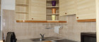 Das Badezimmer mit der Badewanne ist noch in seinem originalen Zustand. Dafür haben wir eine gute moderne Küche mit allen Geräten und ausreichend Platz zum Arbeiten und Verstauen.