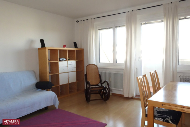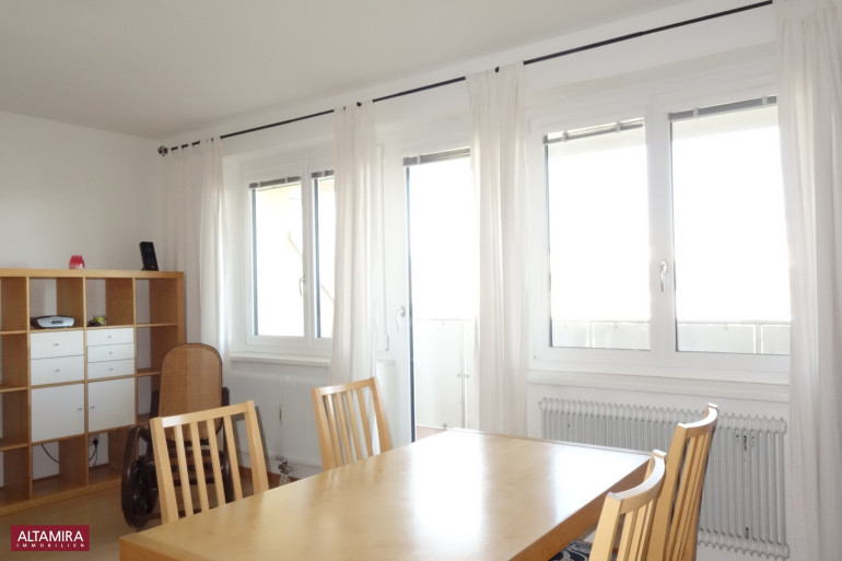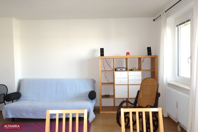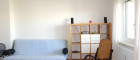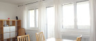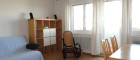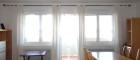 Offener Wohn-/Schlaf-/Kochbereich mit großen Fensterflächen, wodurch die Wohnung hell und freundlich erscheint.