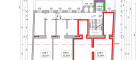 Die angebotene Wohnung hat 57,54 m² und besteht aus zwei Zimmern, einem Kabinett und einer Küche.