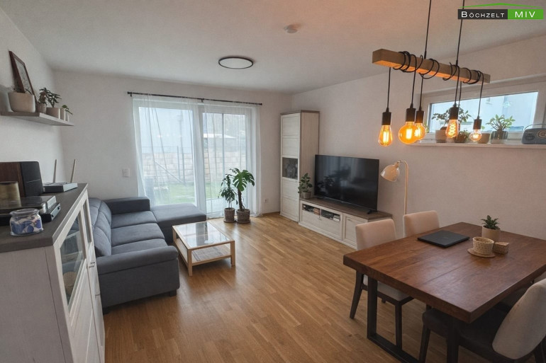 Zum Verkauf gelangt eine moderne 3-Zimmer-Gartenwohnung mit Eigengarten und Terrasse in einem kleinen Haus mit nur 4 Wohneinheiten. Die Wohnung liegt im Erdgeschoss und verfügt über eine Wohnnutzfläche von rund 74,3 m² laut Topografie. Herzstück ist der helle Wohn-Essbereich mit Zugang auf die großzügige Terrasse und in den Eigengarten. Die hochwertige Einbauküche ist im Kaufpreis von EUR 229.000,- bereits enthalten, ebenso wie zwei zugeordnete KFZ-Abstellplätze samt E-Ladestation direkt bei der Liegenschaft.