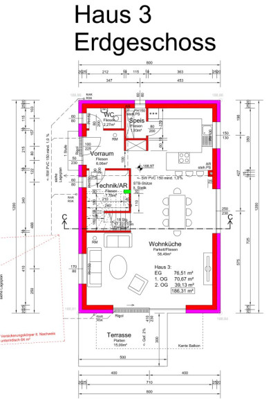 Haus 3: Gesamtwohnfläche: 186,31 m²