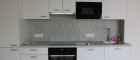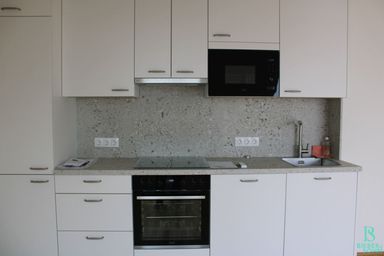 Über einen großzügigen Eingangsbereich mit Platz für eine kleine Garderobe und einem anschließenden eleganten Bad mit Dusche, WC und Waschmaschinenanschluss, gelangt man in den wunderschönen und hellen, ca. 24 m² großen Wohnbereich von dem aus die sonnige, ca. 6 m² große Süd-West Terrasse, mit traumhaftem Ausblick auf den Kahlenberg, die offen gehaltene Dieter Knoll Küche samt Geräten und ein weiteres großes Zimmer zu erreichen sind.