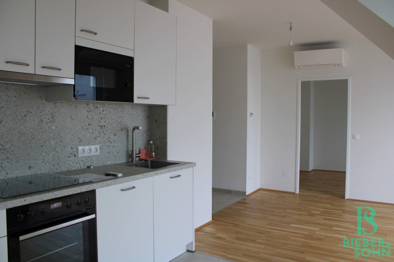 Im vielseitigen und grünen Floridsdorf, in einem 2023 erbauten Neubau, im 4. Liftstock, befindet sich diese sonnige und helle, ca. 45 m² große Dachgeschosswohnung mit herrlicher Süd-West Terrasse und Tiefgaragenplatz.