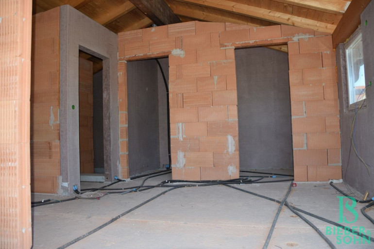 Das in Ziegelmassiv-Bauweise errichtete Haus bietet auf 3 Ebenen einer Familie genügend Platz und Privatsphäre an. Im Erdgeschoss sind das große Wohnzimmer mit offen gehaltener Küche vorzufinden sowie ein Gäste-WC und Ausgang in einen kleinen Garten. Das Obergeschoß verfügt über 2 Zimmer mit Ausgang auf eine Terrasse und ein großes Bad, das Dachgeschoss beinhaltet ein großes Zimmer mit anschließender begehbarer Garderobe, ein Bad und einen Abstellraum sowie über eine weitere, große Terrasse.