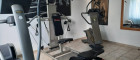 Ein großer und offener Eingangsbereich lädt in das gepflegte Einfamilienhaus mit ca. 210 m² Wohnfläche ein. Es besteht auch einen direkten Zugang von der Garage ins Haus. Im Erdgeschoss befindet sich ein Zimmer, das derzeit als Fitnessraum mit Technogym-Geräten und Kurzhanteln genutzt wird. Ein großes Badezimmer mit Waschküche wird durch zwei weitere Abstell- und Technikräume ergänzt.