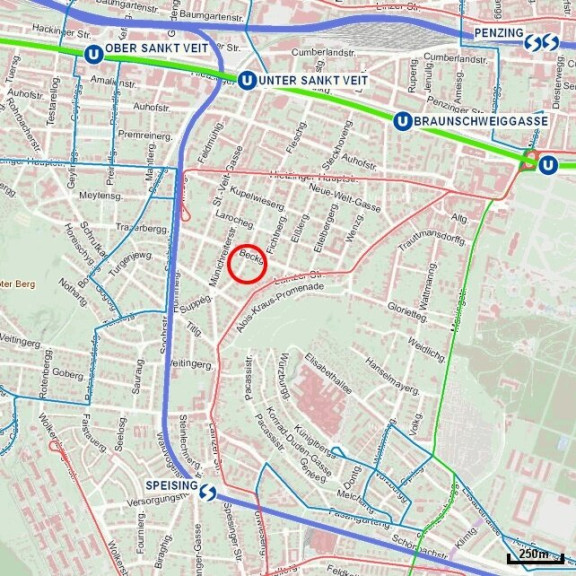Die Geschäfte des täglichen Bedarfs sind unmittelbar vorhanden und die Strassenbahnlinien 60, 10 und U4 ebenso in wenigen Gehminuten zu erreichen.