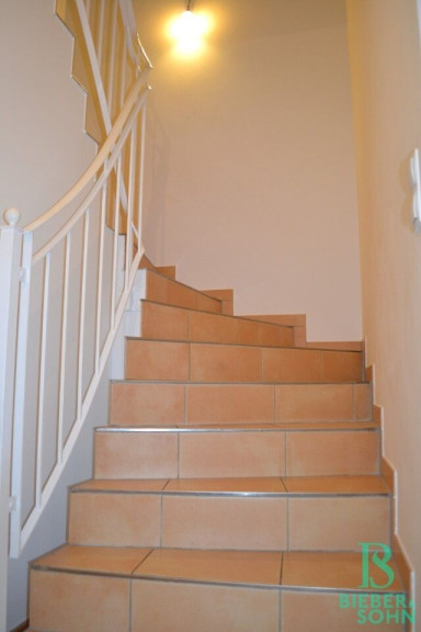 Der Stiegenaufgang führt in das Obergeschoss in dem sich 2 Zimmer, eines davon mit begehbarer Garderobe, mit Ausgang auf den ca. 5m² großen Balkon befinden sowie ein weiteres Zimmer, ein Duschbad und ein großes Bad mit Wanne, Doppelwaschtisch, Waschmaschinenanschluß und ein separates WC.