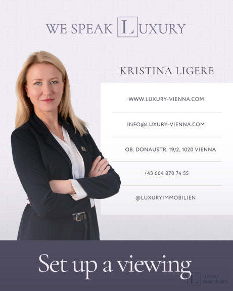 Worte und Fotos können jedoch eine persönliche Besichtigung nicht ersetzen. Bei Besichtigungswünschen bzw. für weitere Informationen steht Ihnen Kristina Ligere unter +43 664 87074555 oder per E-Mail unter info@luxury-vienna.com gerne zur Verfügung.