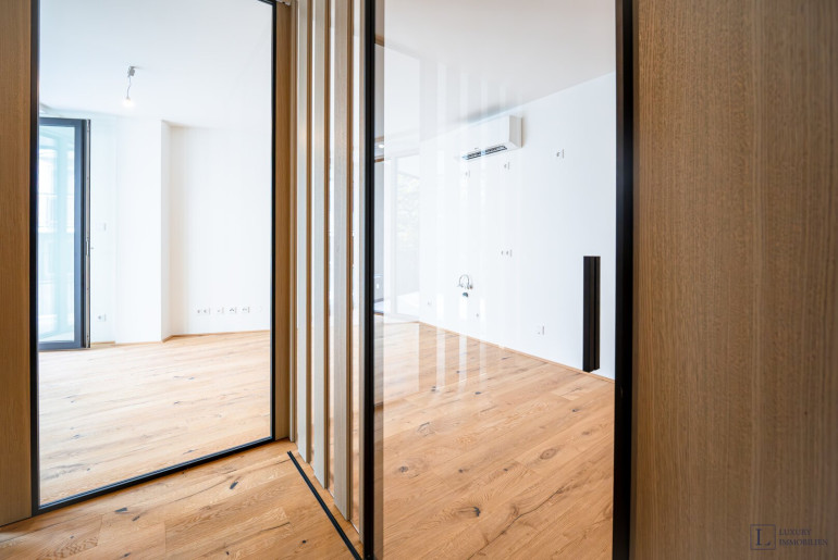 Die angebotene Wohnung befindet sich im erste Stock eines neuen Anbaus eines kürzlich restaurierten Projekts, das elegant industrielle Elemente mit Wiener Klassik verbindet. Die luxuriöse Lobby und der freundliche Concierge werden niemanden gleichgültig lassen.