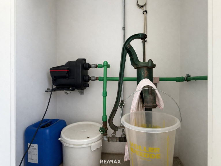 Beheizt wird das Objekt grundsätzlich über eine Gas-Zentralheizung mit Flüssiggastank; zusätzlich befindet sich im Kellerbereich eine Holzheizung, die den ländlichen Charakter der Immobilie unterstreicht. Die Liegenschaft ist nicht an das öffentliche Wasser- und Kanalnetz angeschlossen, sondern verfügt über eigenes Brunnenwasser sowie eine Sickergrube, die regelmäßig entleert wird. Gerade für Käufer, die ein unabhängigeres Leben in naturnaher Umgebung suchen, liegt darin nicht nur eine Besonderheit, sondern auch ein reizvoller Teil des Gesamtkonzepts.