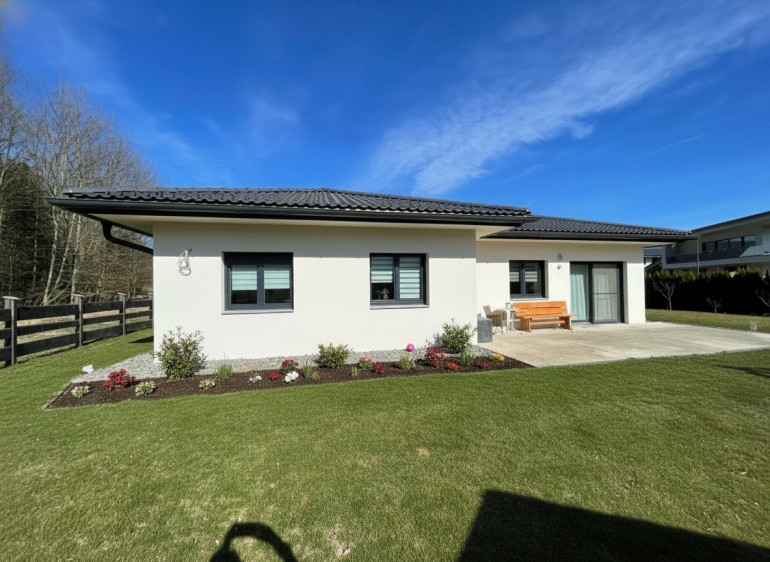 Willkommen in Ihrem neuen Zuhause! Dieser hochwertige neue Bungalow, barrierefrei, vereint moderne Architektur, durchdachte Raumaufteilung und eine idyllische Lage am Waldrand – perfekt für Familien, die Ruhe und Natur schätzen.