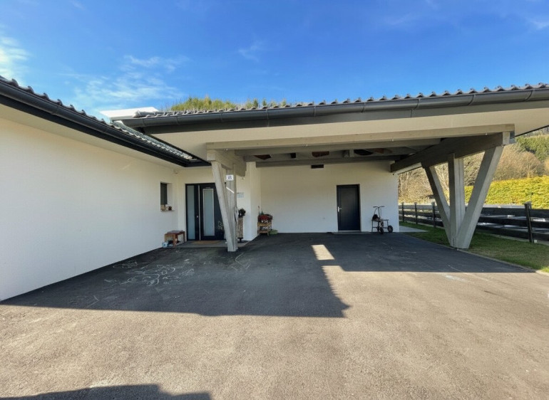 Für Ihre Fahrzeuge steht ein großes Carport für 2 Autos bereit. Die moderne Heizung mit Wasserwärmepumpe (Heizen und Kühlen) sorgt in Kombination mit der massiven Bauweise und modernster Technik für geringe Betriebskosten und hohen Wohnkomfort.