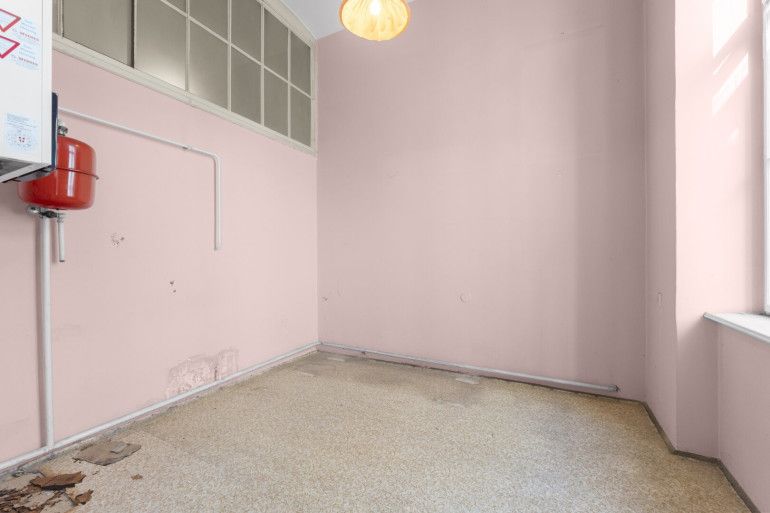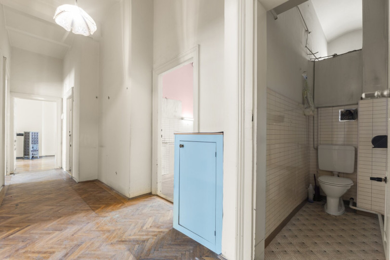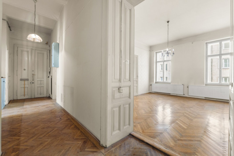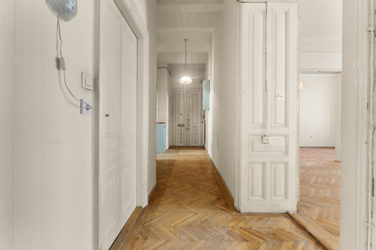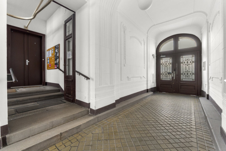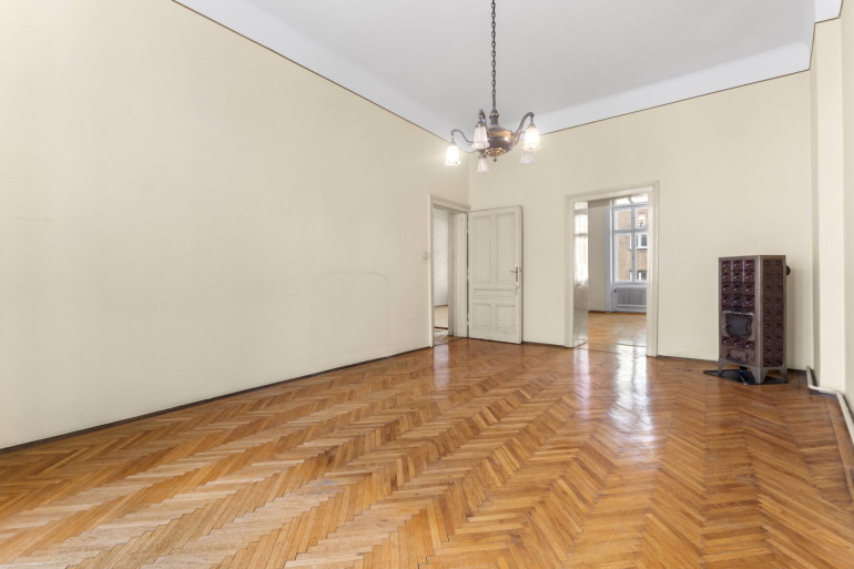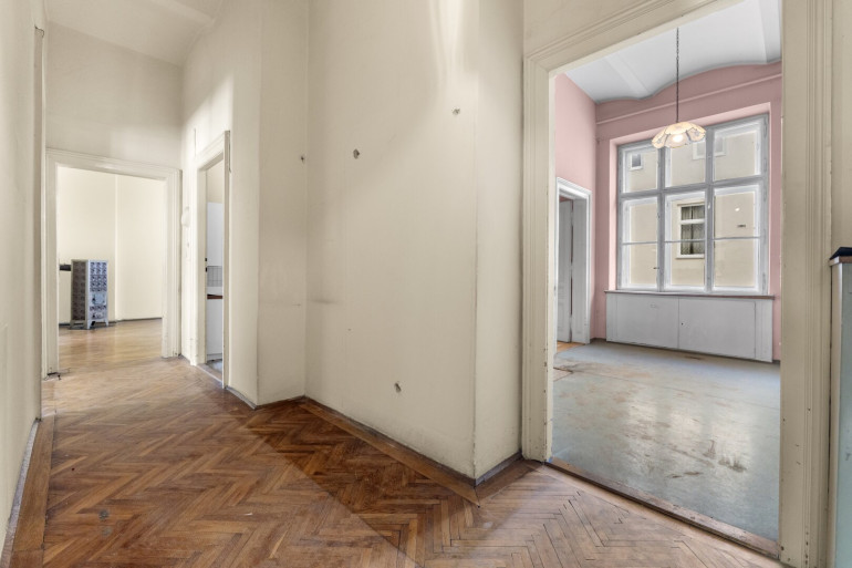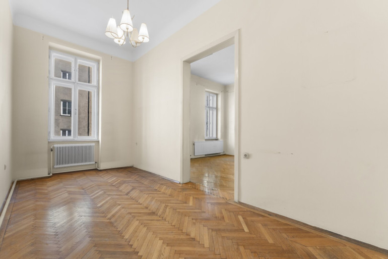 Die Wohnung befindet sich im 2. Stock (ohne Lift) und in einem sanierungsbedürftigen Zustand. Sie bietet sehr viele Elemente eines Stilaltbaus: