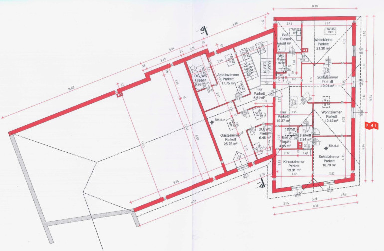 DG: ca. 183,16m² bestehend aus Vorraum, 7 Zimmer, 3 Bäder