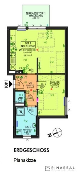 Zur Vermietung gelangt eine 2 Zimmer Erdgeschosswohnung mit Terrasse, in einer kleinen Wohnhausanlage mit 6 Einheiten, in der Emmerbergasse in Wr. Neustadt - NEUBAU / ZWEITBEZUG!
