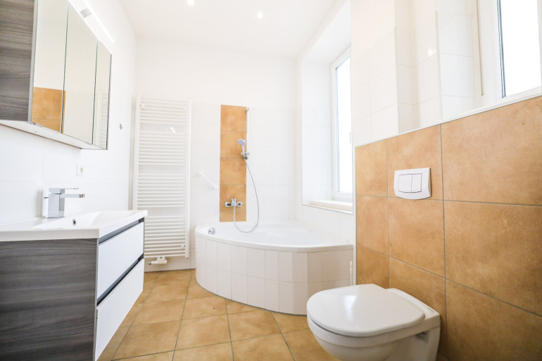 Besonders das Badezimmer wird Sie begeistern: Mit einer Eckbadewanne, Fußbodenheizung und Tageslicht durch zwei große Fenster wird jeder Morgen zum Wohlfühlerlebnis. Die Küche lässt ebenfalls keine Wünsche offen – voll ausgestattet und perfekt ausgeleuchtet, bietet sie ausreichend Platz zum Kochen und Genießen.