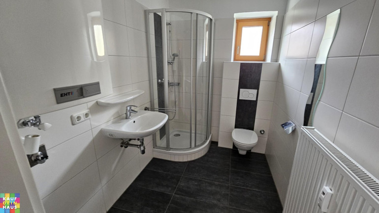 Fliesen, Laminatboden, Zentralheizung, Einbauküche, Dusche