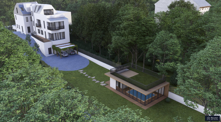 Auf einer Grundfläche von 1.023 m² wird ein bestehendes Altbauhaus in eine luxuriöse Villa mit Pool, großzügigem Garten, Stellplätzen und einer separaten Einliegerwohnung umgestaltet. Eine detaillierte Bebauungsstudie eines renommierten Architekten garantieren höchsten Komfort, Privatsphäre und einen beeindruckenden Wien-Blick.