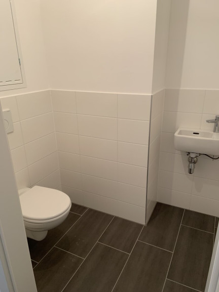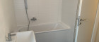Im Badezimmer gibt es Badewanne und Dusche und auch Platz und Anschluss für eine Waschmaschine.