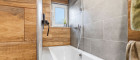 - Badezimmer mit WC, Badewanne und Fenster
