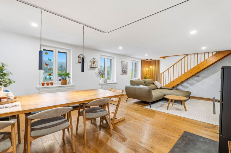 - Offener Ess- und Wohnbereich mit viel Tageslicht und mehreren Fenstern