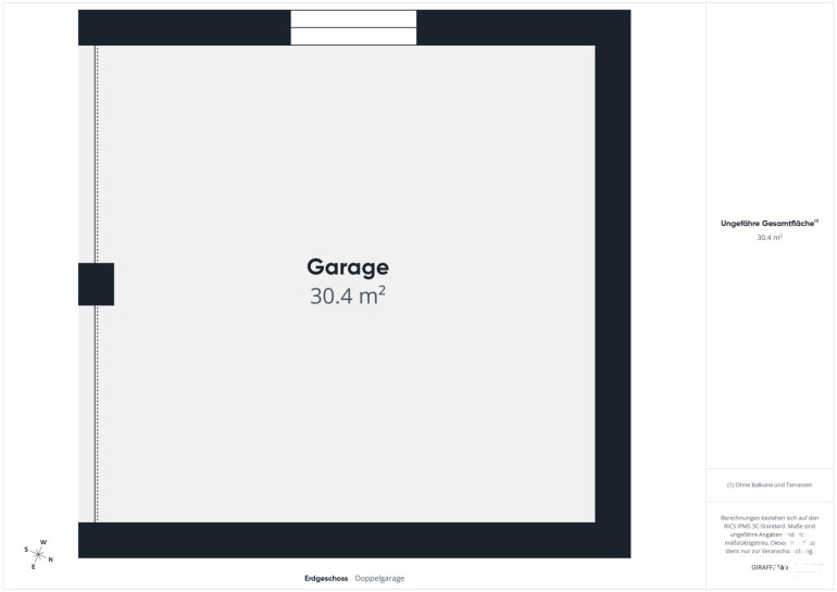 Die Doppelgarage mit rund 30 m² bietet ausreichend Platz für zwei Fahrzeuge sowie zusätzlichen Stauraum.