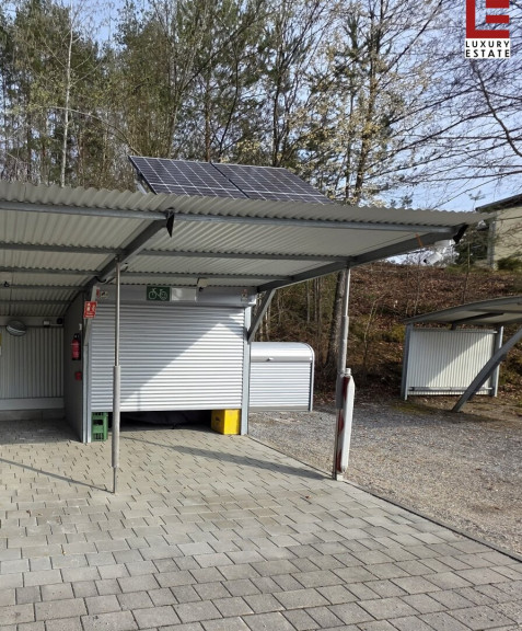 Die gut konzipierte Wohnung besteht aus einem großzügigen Wohn-Essbereich, der sich nach Süden um einen ca. 10 m² großen, überdachten Balkon erweitert. Die Küche und das Bad mit WC sind neu- und hochwertig eingerichtet. Das nach Norden gerichtete Schlafzimmer ist ruhig und gemütlich. Geheizt wird die gut isolierte und gewartete Immobilie mit einem Pelletofen oder hochwertigen Marmor-Infrarot-Heizplatten, die wie die TV-Anlage und die Alarmanlage über das Internet steuerbar sind. Ein Glasfaseranschluss ist demnächst erwerbbar. An der privaten Zufahrstraße am Waldrand befindet sich im Westen das eigene Carport mit Rollläden und extra Gästeparkplätze.