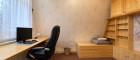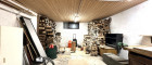 Die durchgehende Holzverkleidung im Innenbereich unterstreicht den naturnahen Charakter und schafft eine warme, einladende Wohnatmosphäre.
