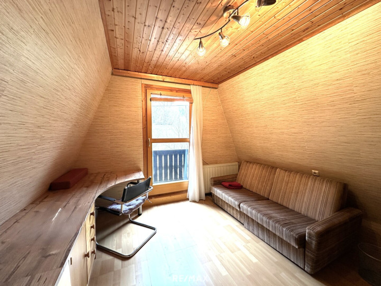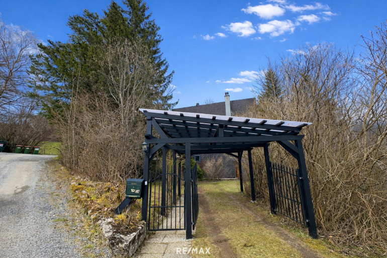 Parkett, Heizofen, Zentralheizung, Einbauküche, Bad mit Fenster, Carport, Sauna
