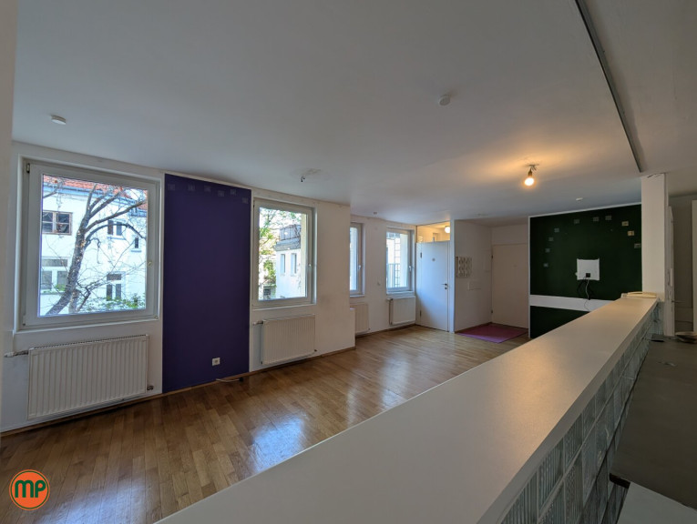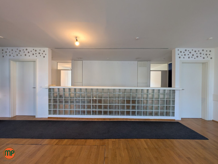 - Maximale Flexibilität: Dank zweier getrennter Eingänge ist eine strikte Unterteilung in Praxis- und Privatbereich möglich. Alternativ lässt sich die Fläche vollständig als großflächige Ordination mit weiteren Behandlungszimmern nutzen.