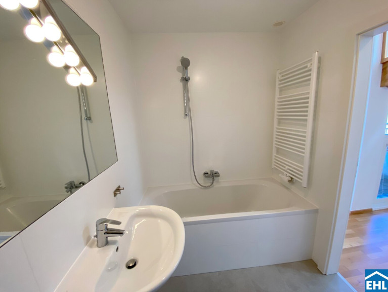 Parkett, Fliesen, Einbauküche, Wohnküche / offene Küche, Personenaufzug, Badewanne