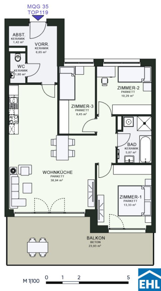 Die Wohnungen bieten hochwertige Ausstattungsdetails wie Parkett- oder Keramikböden, maßgefertigte Einbauküchen, Fußbodenheizung über Fernwärme, eigene Kellerabteile sowie private Außenflächen in Form von Balkonen oder Gärten. Sämtliche Einheiten sind barrierefrei über Aufzüge oder überdachte Erschließungswege zugänglich.